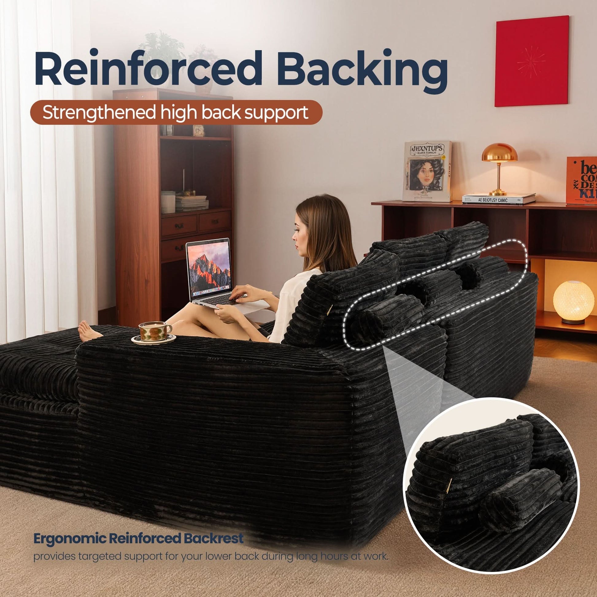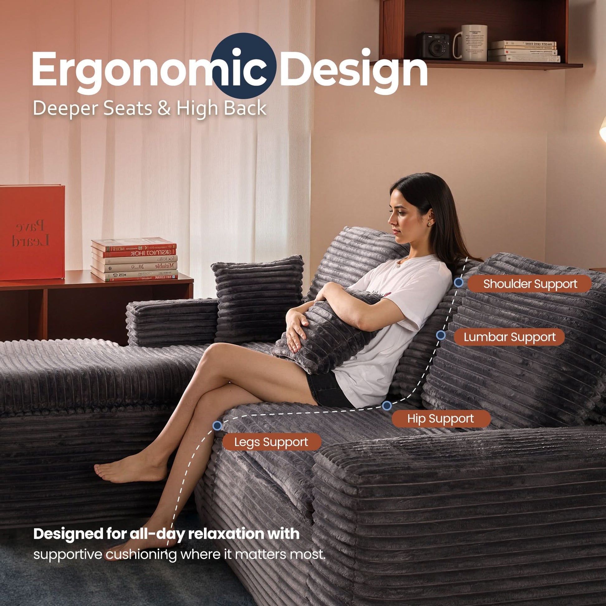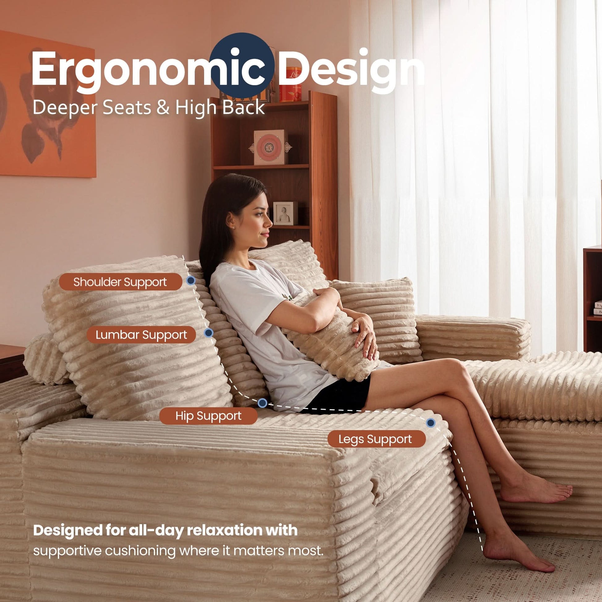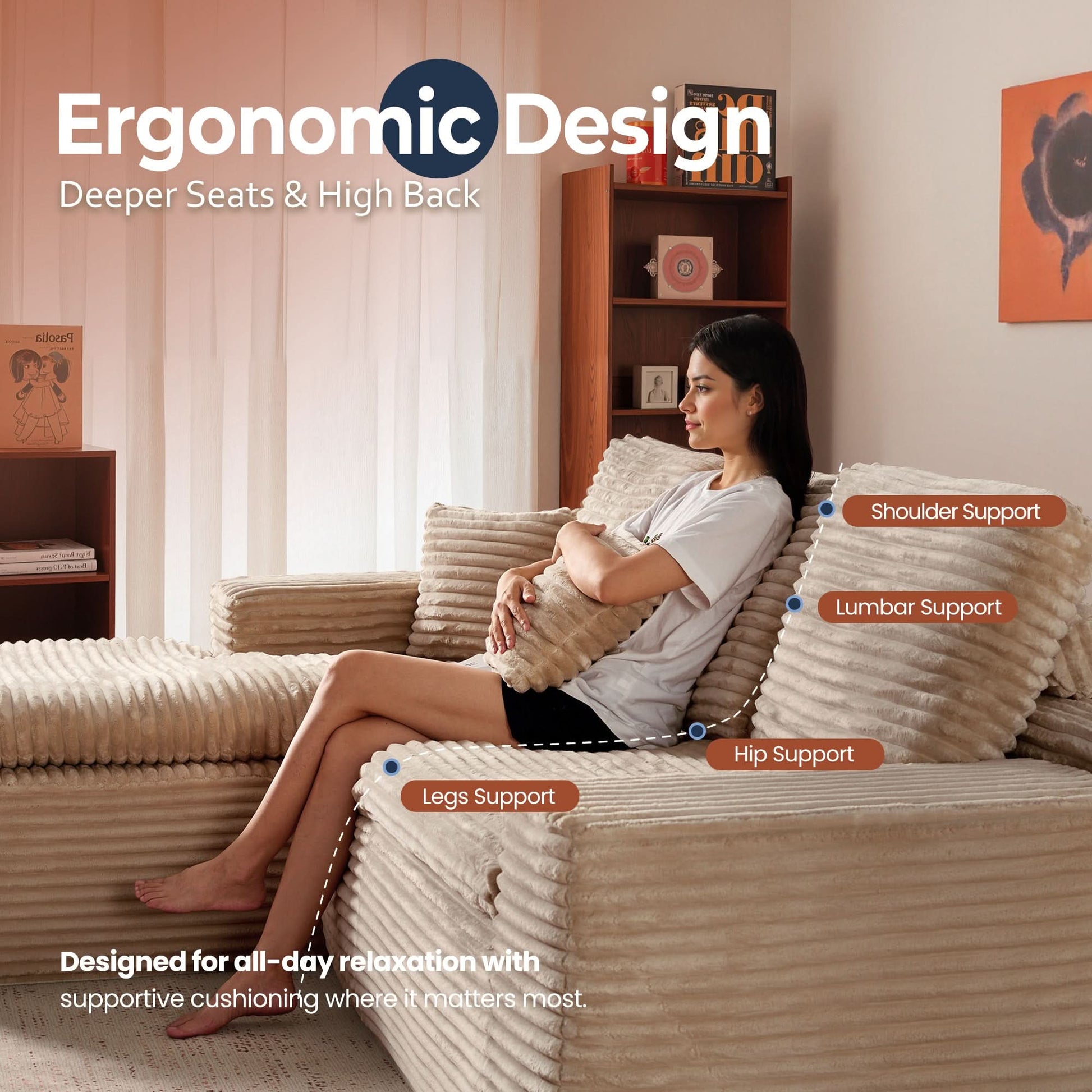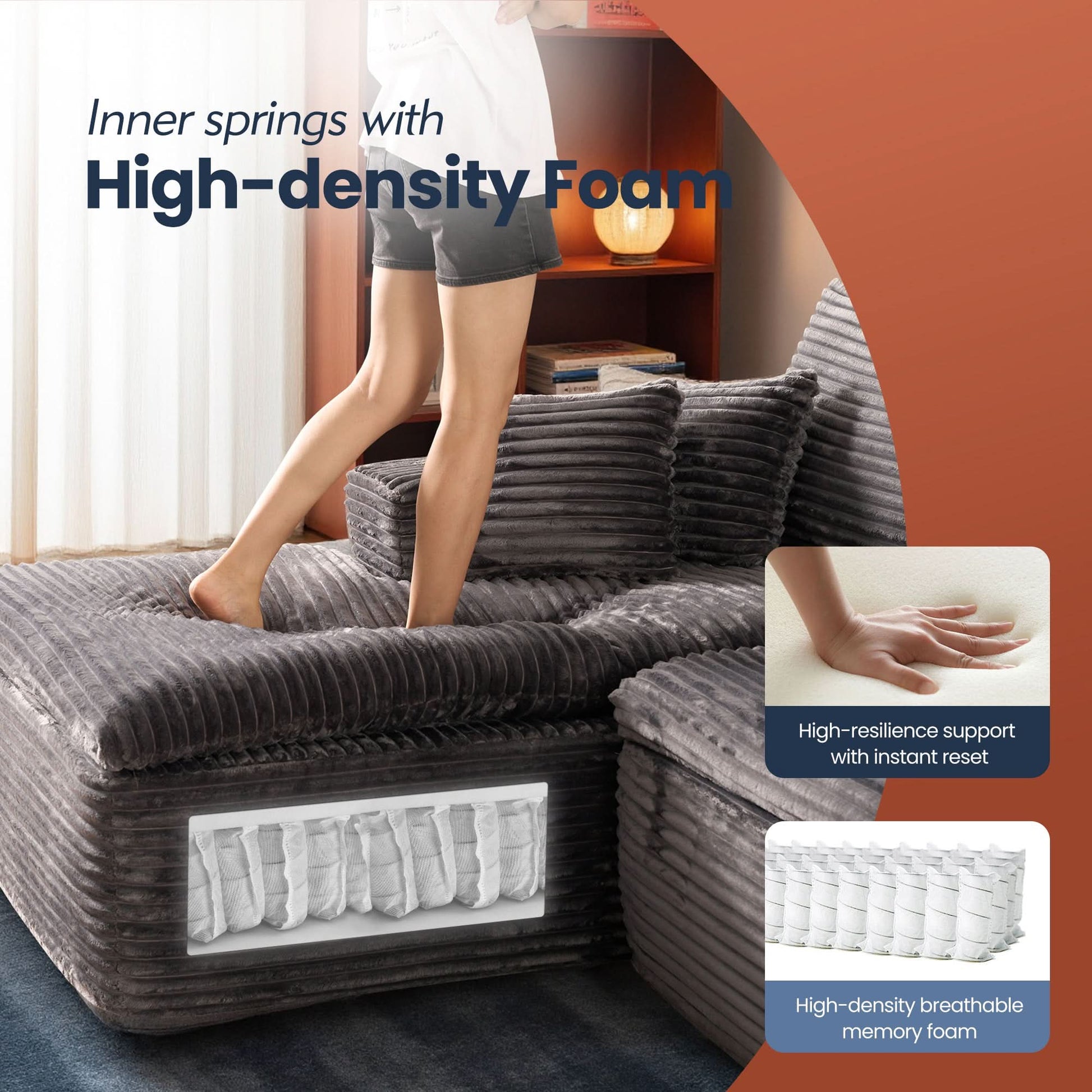 No Assembly Required:With our modular cloud chaise, assembly is a breeze—just unbox, fluff each piece, and let it spring back to shape. Full recovery takes about 72 hours. Enjoy the ease of zero setup!