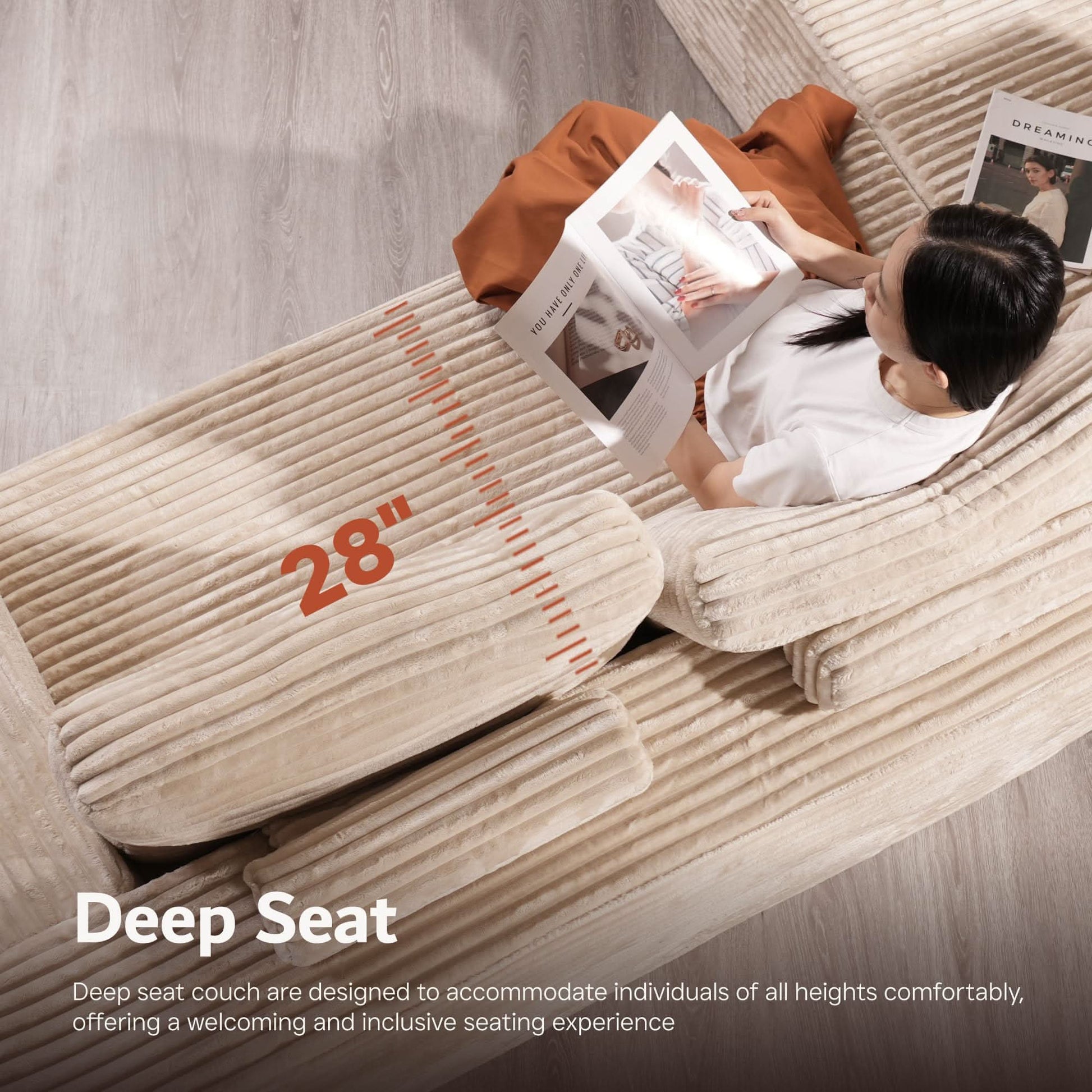 OVIOS L-Shaped Cloud Sectional Sofa with Chaise - Plush Corduroy, Memory Foam & No Assembly
