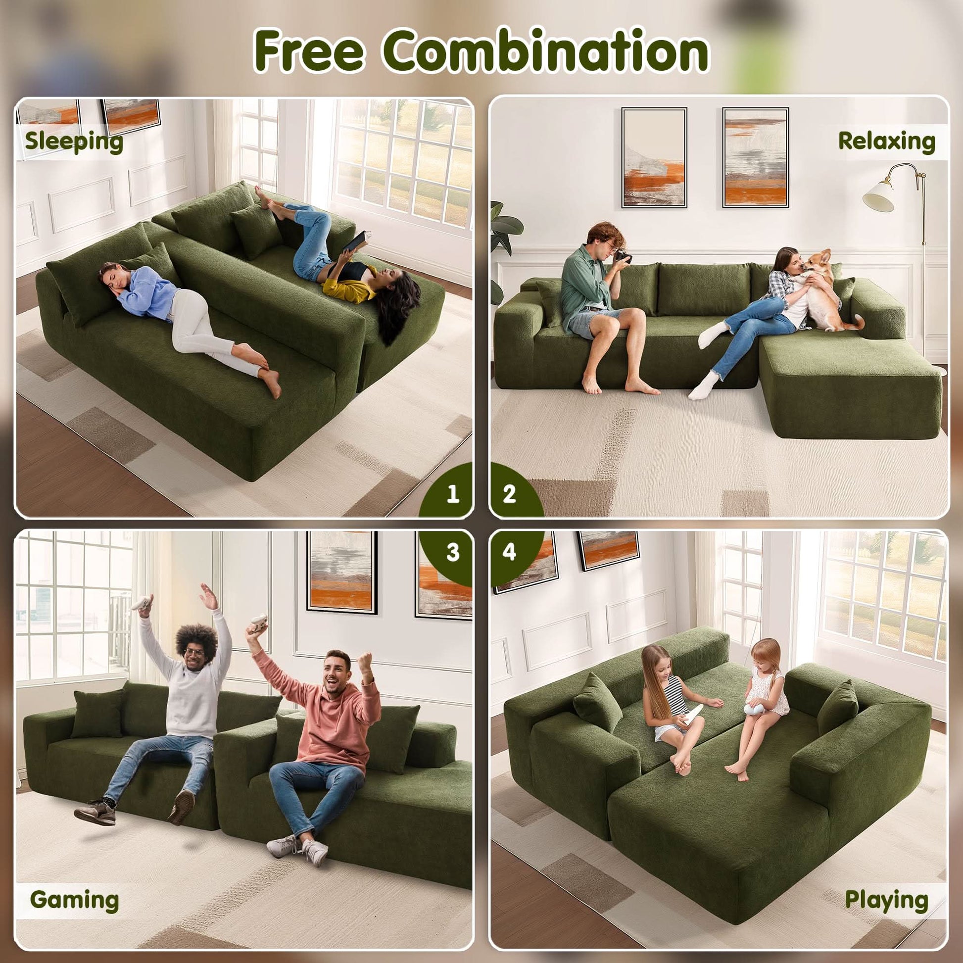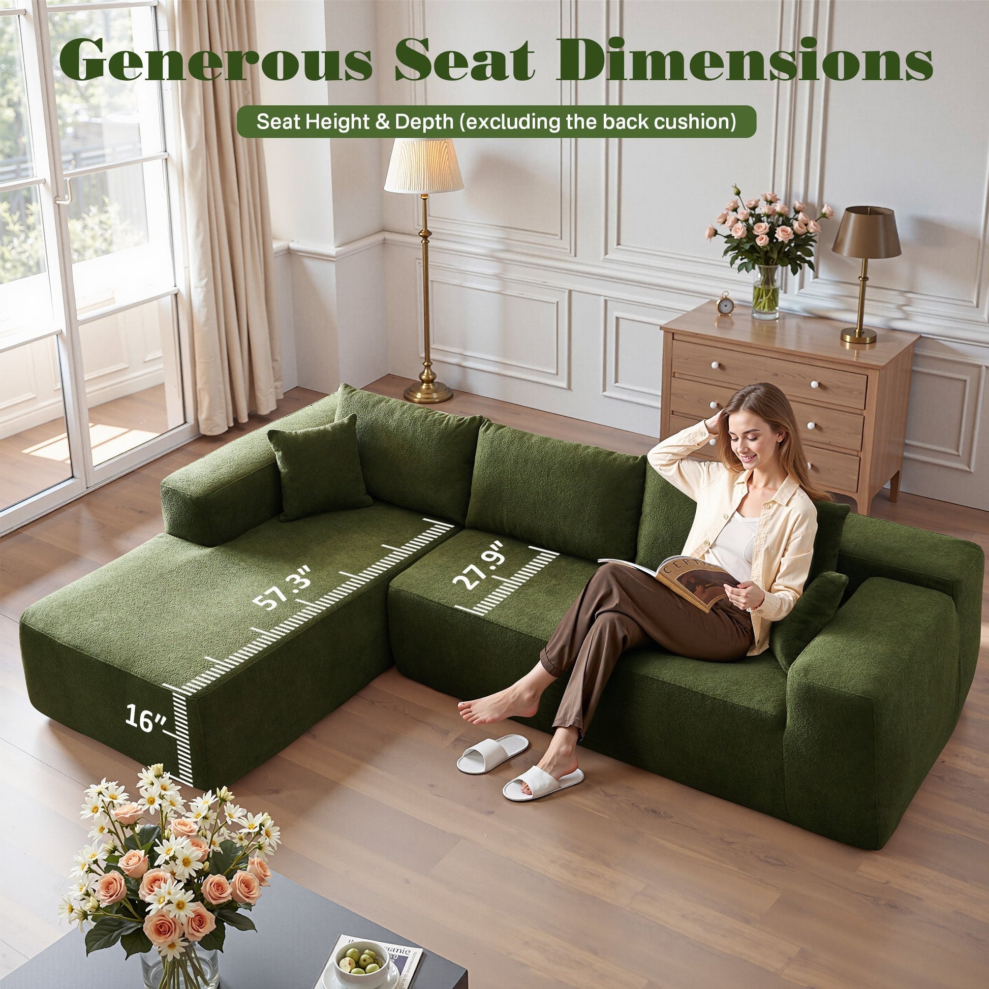 OVIOS 104" L-Shape Modular Couch with Chaise,Cloud Velvet Fabric,No Assembly Required