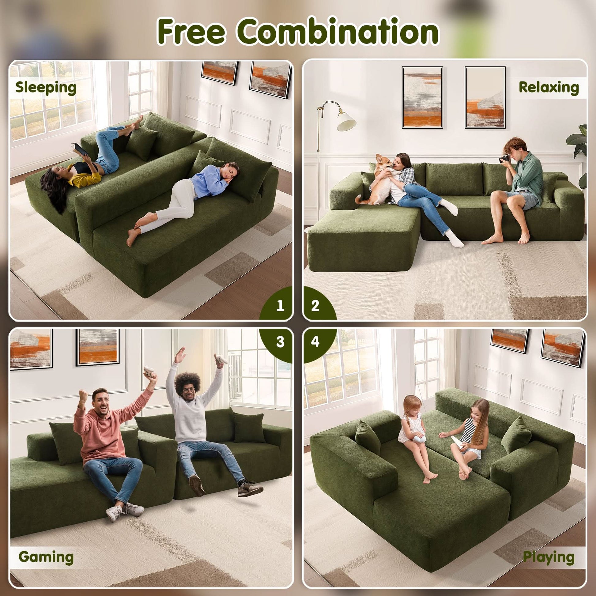 No Assembly Required:Escape the typical furniture setup hassle with our modular cloud lounge. Simply unbox all parts and lightly tap each segment to boost its springiness and poof, bringing it back to its photogenic glory. Complete revival may take up to around 72 hours. Delight in the ease of a no-assembly nirvana!